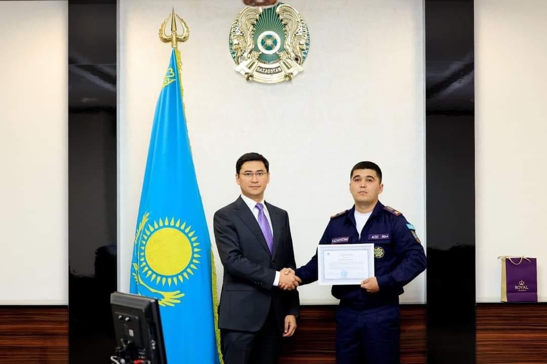 Қала әкімінің орынбасары Айдын Кәрімов оқыс оқиға кезінде екі баланы құтқарған өрт сөндірушілерді марапаттап, қала әкімінің Алғыс хатын табыстады. №5 өрт сөндіру бөлімінің қызметкерлері Марат Әліпбаев пен Арман Махмұт қою түтінге оранған пәтердің ішіннен 4-5 жасар бүлдіршіндерді шұғыл түрде қауіпсіз жерге шығарып, өміріне араша түскен болатын.