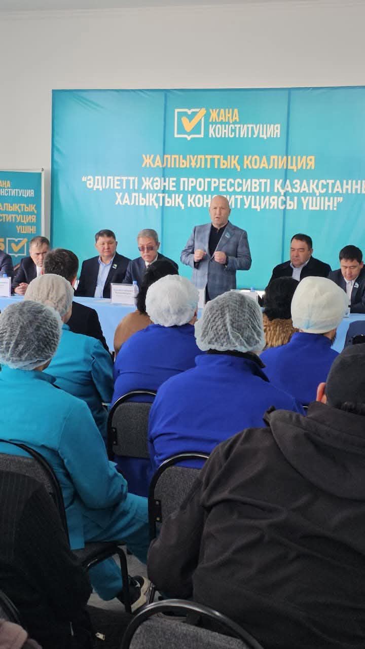 Коалиция мүшелерінің еңбек ұжымымен кездесу жиыны одан әрі «Қазкрахмал» ЖШС-нің өндірістік алаңында жалғасты. Кездесуде адам Конституция белгілеген мемлекеттің ең басты құндылығы екені айтылды. Бұл қағидат декларативті ұстаным ғана емес, нақты құқықтық тетіктермен бекітілген жүйе екеніне баса мән берілді.