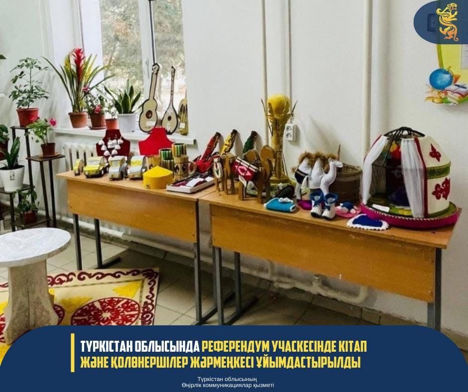ТҮРКІСТАН ОБЛЫСЫНДА РЕФЕРЕНДУМ УЧАСКЕСІНДЕ КІТАП ЖӘНЕ ҚОЛӨНЕРШІЛЕР ЖӘРМЕҢКЕСІ ҰЙЫМДАСТЫРЫЛДЫ