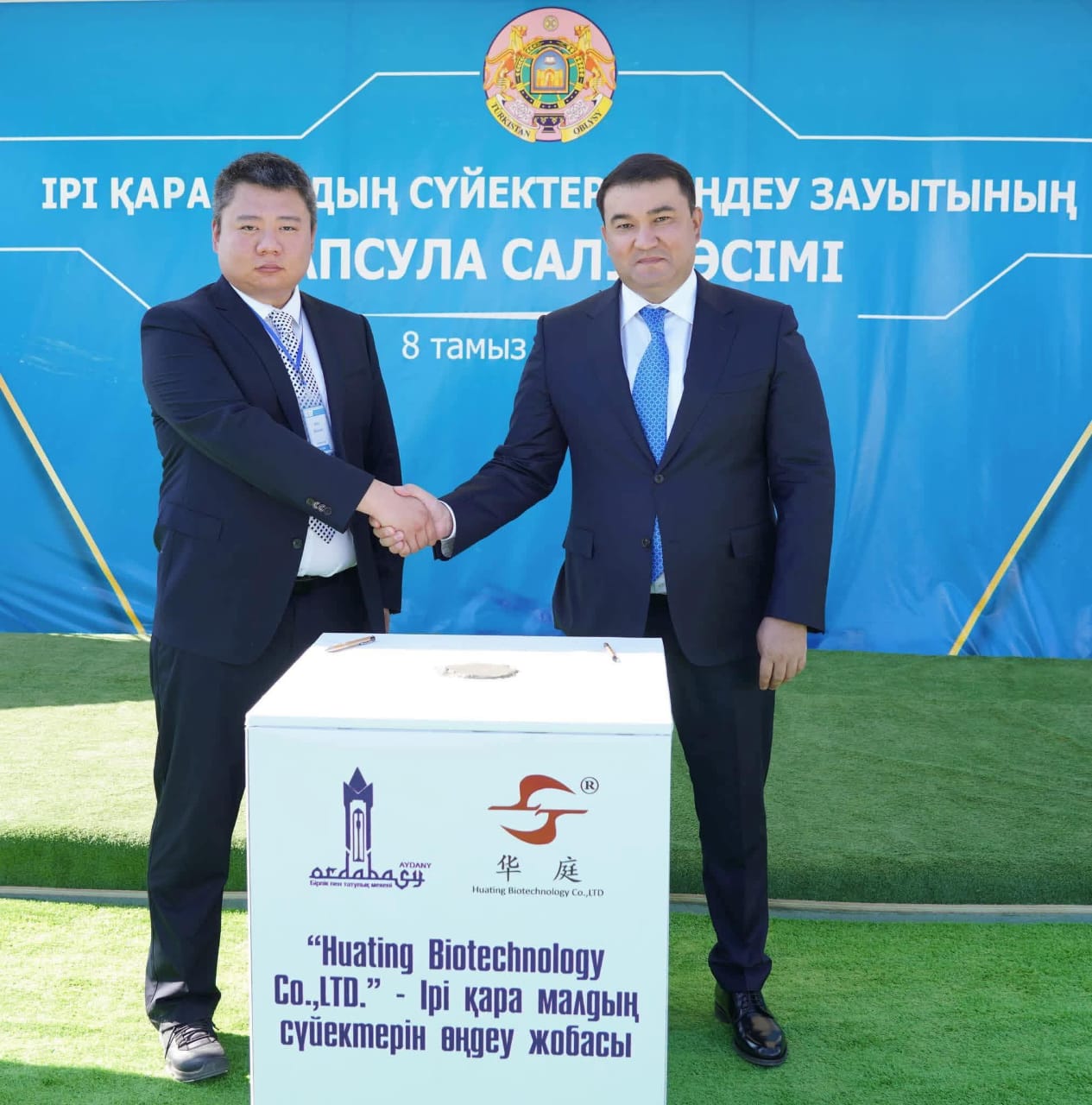 Түркістан облысы, Ордабасы ауданында «Tangshan Huating Ceramics Co., LTD.» компаниясының сиырдың сүйегін өңдеп, пептон, желатин қоспасын дайындайтын зауыт салынады. Бүгін облыс басшысы Нұралхан Көшеров Ордабасы ауданына жұмыс сапарымен барып, шетелдік инвестормен бірге Қазақстанда әзірге баламасы жоқ зауыттың капсуласын салды.