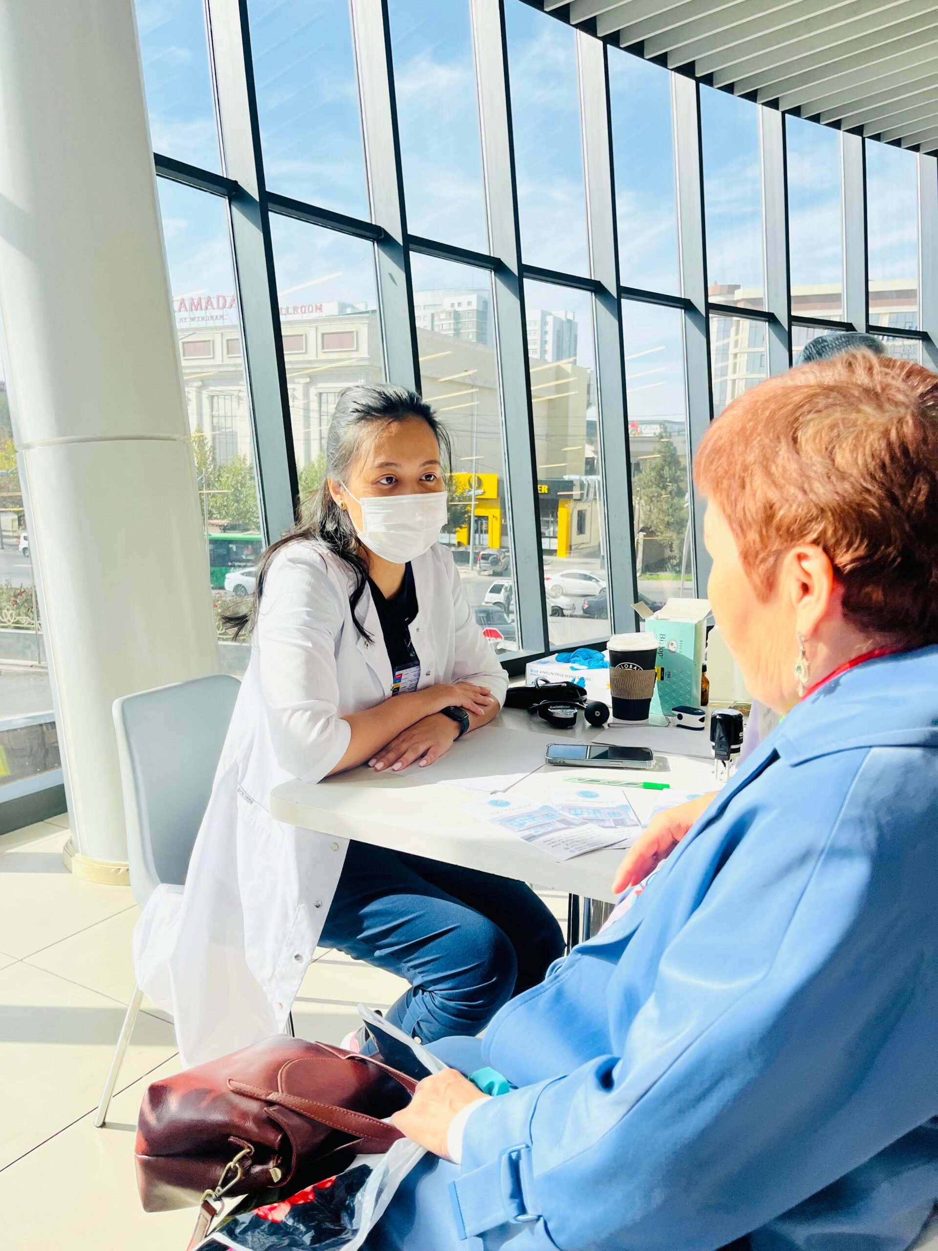 Аталған шара аясында бүгін “Sunkar Premium” және “Алинур” клиникасының дәрігерлері “Береке”, “Hyper House” сауда үйлерінде тұрғындарды қабылдап, тегін медициналық консультациялық-диагностикалық қызметтерін көрсетті. Невропатолог, кардиолог,гастроэнтеролог сынды бейінді мамандар мен жалпы тәжірибелік дәрігерлер азаматтарға кеңес беріп, қажет болған жағдайда әрі қарай ем-шара алу бойынша бағыт-бағдар ұсынды.