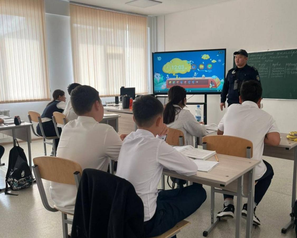 Шымкентте тәртіп сақшылары оқушыларға жол қауіпсіздігін түсіндірді