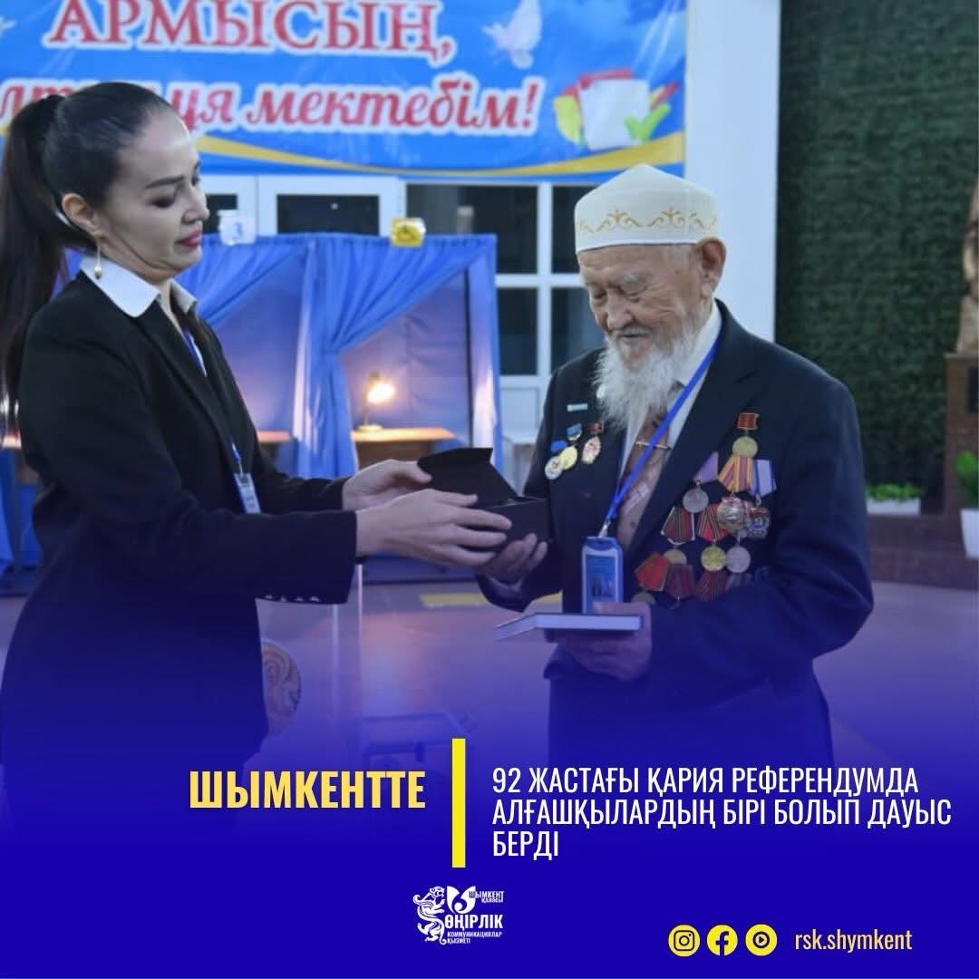 Шымкент қаласында өтіп жатқан референдумда тұрғындардың белсенділігі таңғы уақыттан-ақ байқалды. №142 референдум учаскесінде 92 жастағы қария Өркен Әбдіреев алғашқылардың бірі болып келіп, өз таңдауын жасады. Қала өміріне белсене араласып, қоғамдық жұмыстардан шет қалмайтын қоғам белсендісі бүгінгі маңызды саяси науқанда да азаматтық ұстанымын көрсетті.