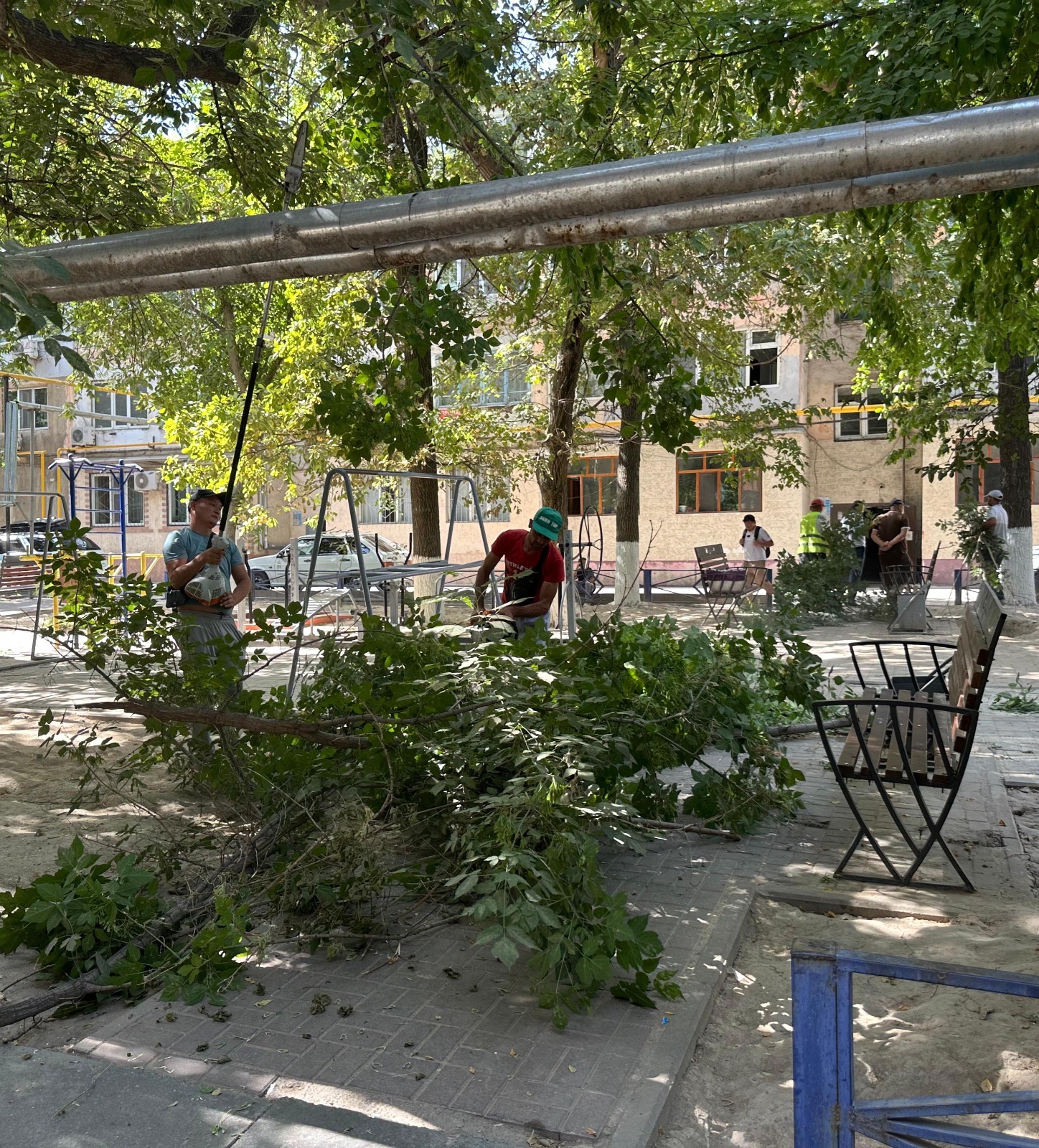 • Ағаштардың қураған бұтақтарын кесу және арнайы техникамен арту;