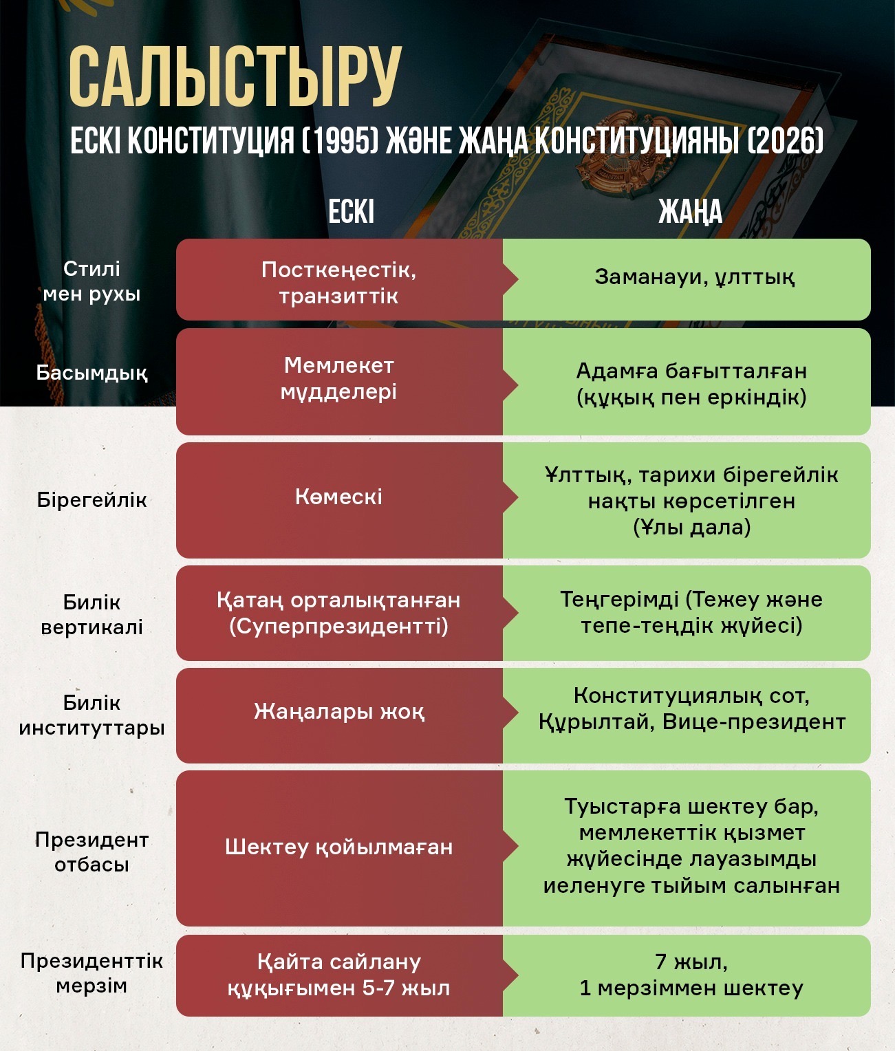 ҚАЗАҚСТАННЫҢ ЖАҢА КОНСТИТУЦИЯСЫ: ЕСКІ МЕН ЖАҢАНЫ САЛЫСТЫРУ
