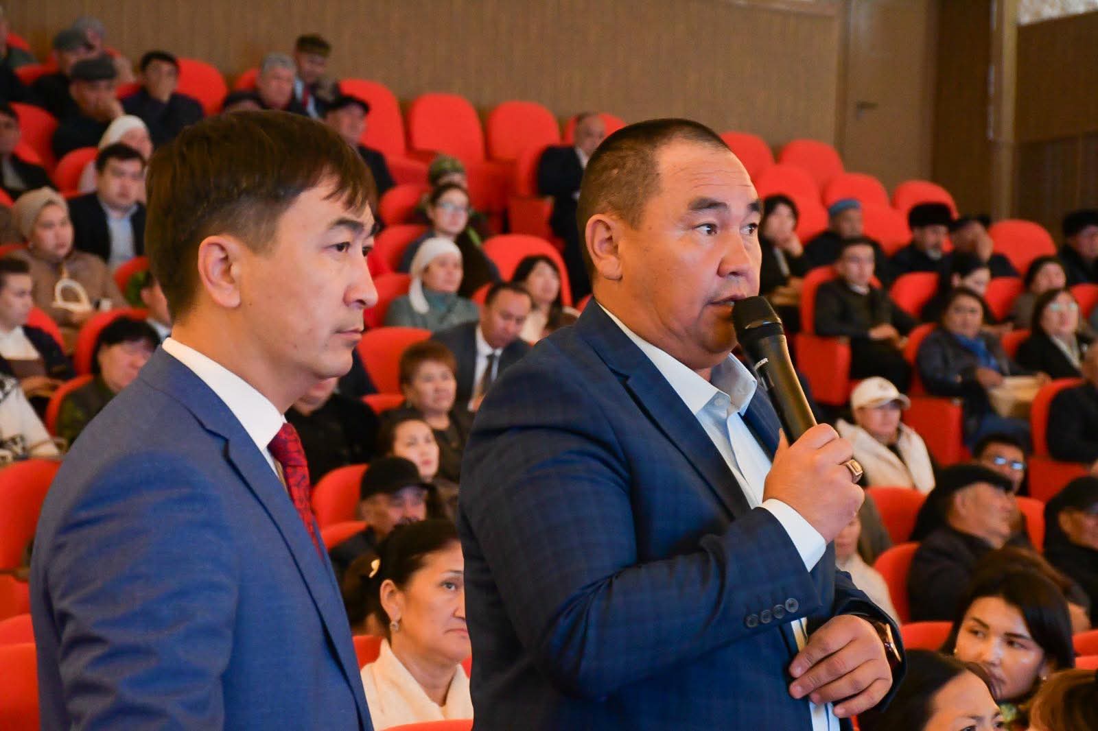 Жиынға аудан әкімі Азат Оралбаев, аудандық мәслихат төрағасы Бақдәулет Жұмабеков, облыстық мәслихат төрағасы Әбішов Нұралы Әлмаханұлы, облыстық мәслихат депутаттары Әбіш Дулат Назарбекұлы, Райымбеков Ғани Ақылбекұлы және БАҚ өкілдері мен аудан тұрғындары қатысып, халықтың өтініштері мен ұсыныс-пікірлері тыңдалып, сұрақтарына жауап берілді.